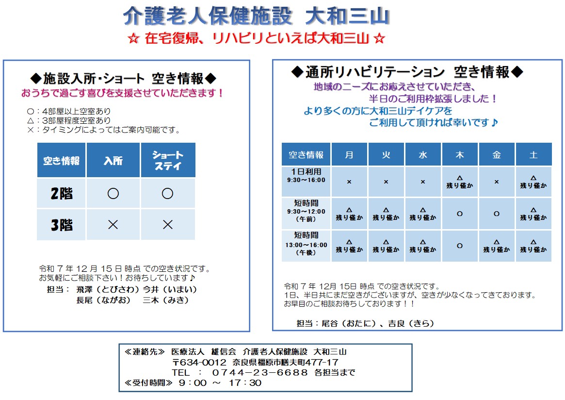 令和7年12月15日 時点での 空所状況です